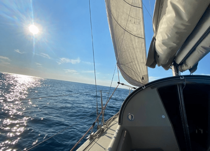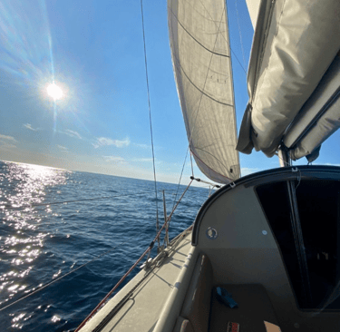 The boat is a "Kaidoz 31", it is a 10 meter long sailboat, known for its very large cockpit (exterior part of the boat). It can comfortably accommodate 12 people. Its low weight and large sail make it very responsive and guarantee sensations even in light winds. It is a boat with ideal characteristics for sea trips.
